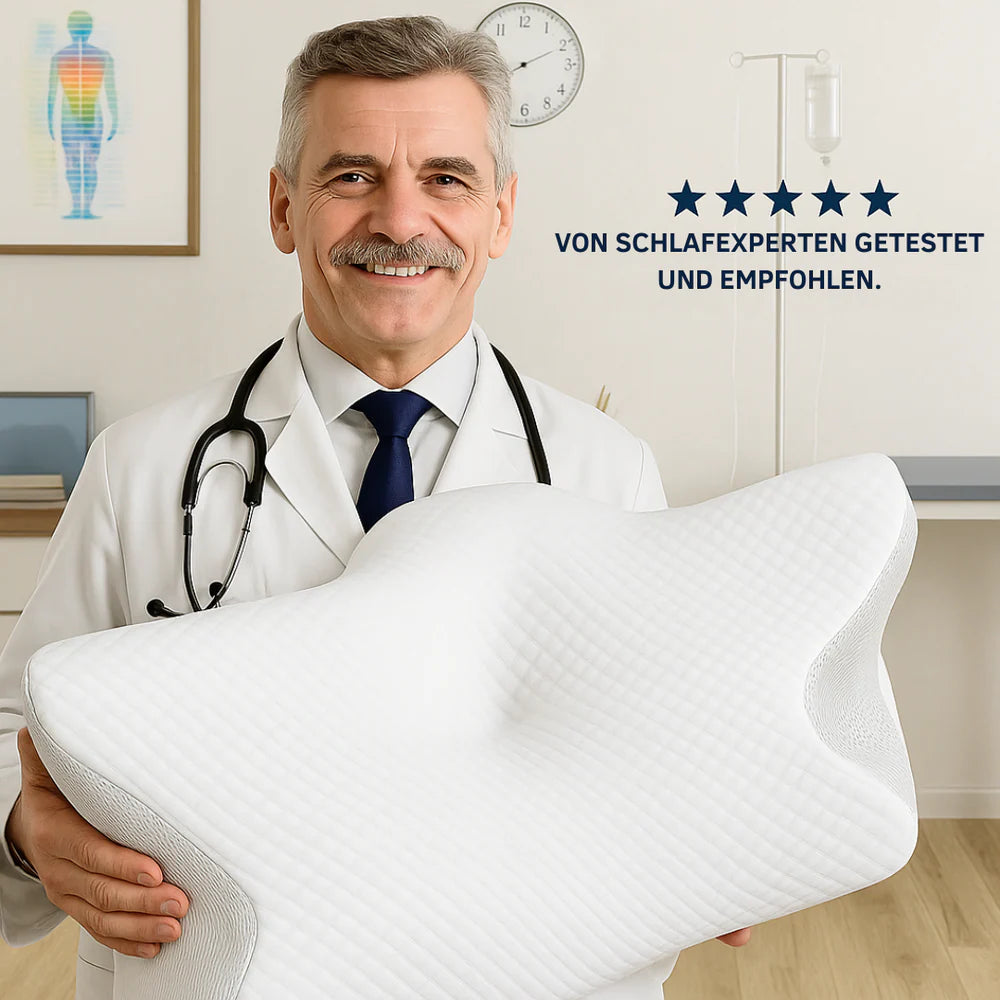 Fachärzte für Orthopädie und Schlafmedizin empfehlen Somiva wegen seiner ergonomischen Form und gezielten Entlastung der Halswirbelsäule. Ein Kissen, das medizinisches Know-how und Schlafkomfort perfekt vereint.